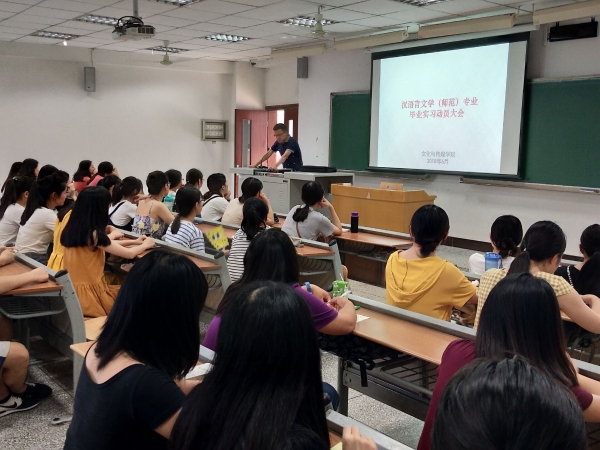 为使同学们圆满完成实习任务,6月26日下午5点,中文系2019届毕业生实习动员会在知津楼D301举行。会议由1683168诸侯快讯官网中文系系主任王长武老师主持,2015级辅导员张雪及汉语言文学(师范)专业全体学生出席会议。