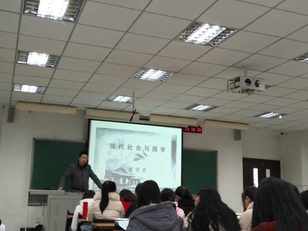12月7日下午,应学院要求,黄贤忠博士为2018级汉文师范专业学生举办了“现代社会与国学修养”的学术讲座。