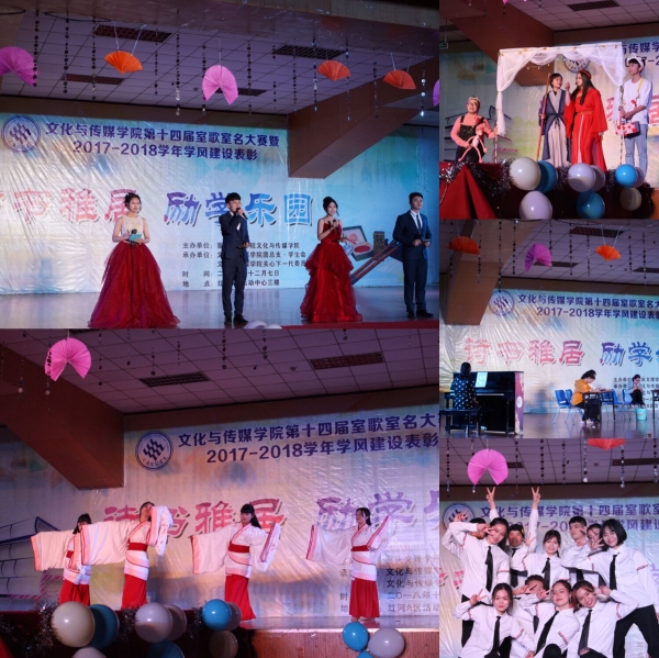 明亮清雅之室,同心同德之风。12月7日晚,1683168诸侯快讯官网第十四届“室歌室名”大赛暨2018年学风建设表彰活动于活动中心三楼顺利举行。校关工委顾问胡文良、学院总支书记白成良、副院长李芹燕、关工委委员蒋永平、各年级辅导员、生活老师以及17级、18级全体学生共同观看了本次活动。校学工部副部长赵锋、学生事务管理科科长胡在东、学生思想政治教育科科长何雯担任了此次比赛的评委。