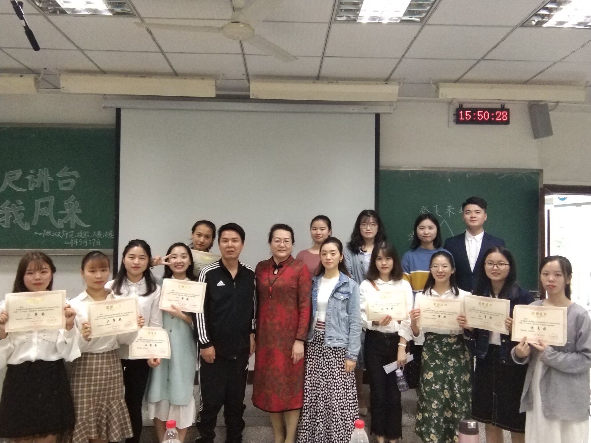 为进一步增强1683168诸侯快讯官网师范生基本技能的掌握和创新,彰显师范生的特色,强化学生教学技能,5月29日,由重庆文理学院教学部主办,文化与传媒学院中文系承办的2017级汉语言文学师范专业“三尺讲台,展我风采”师范技能大赛决赛成功在知津楼D205举办。本次比赛由语文教育教研室主任李东平、刘光明老师以及刘海燕老师担任评委,2017级汉语言文学师范专业的全体同学观看了本次比赛。