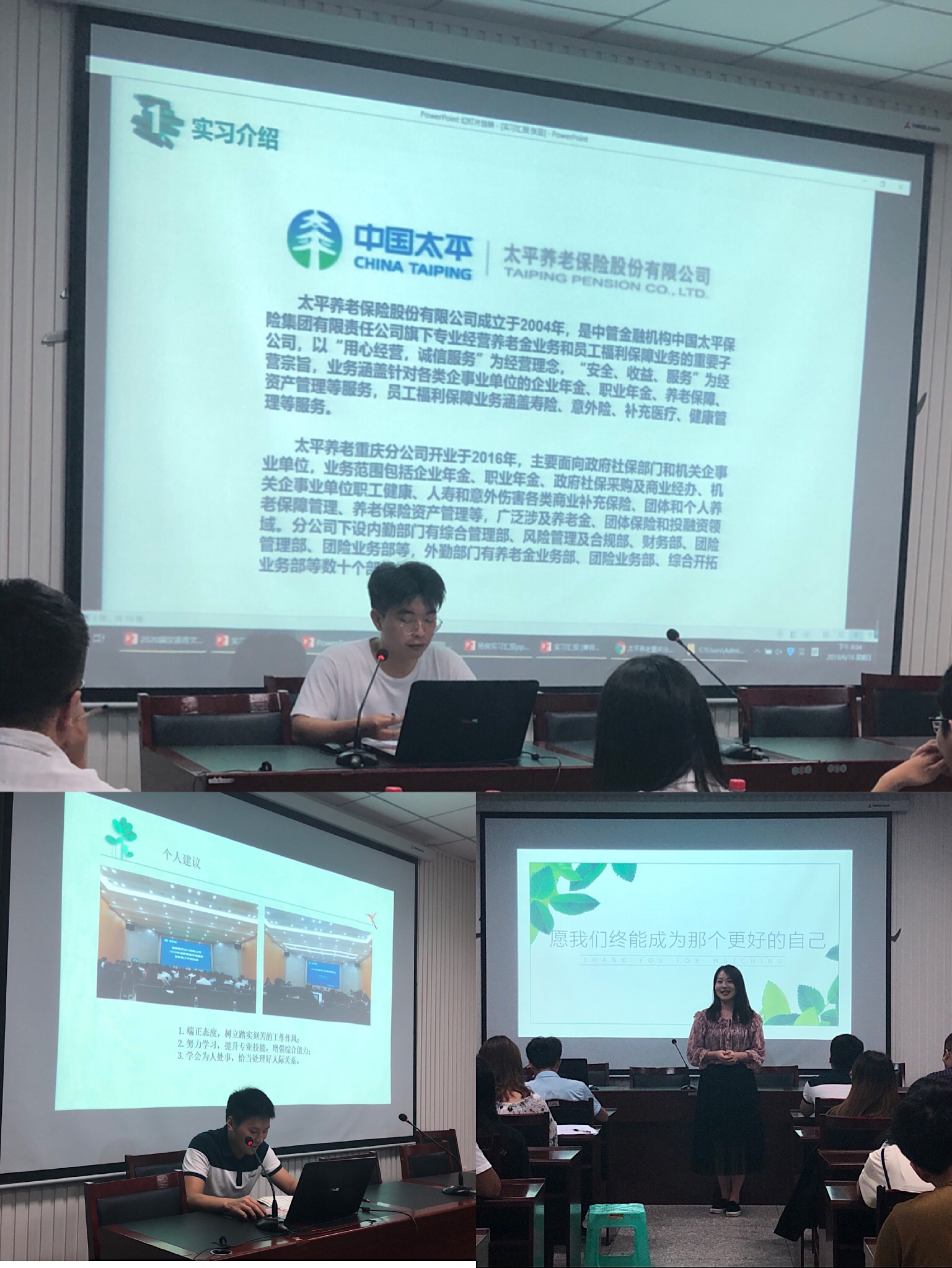 张亚从实习公司的基本情况及工作内容出发,分享他的心得,认为求职时应擦亮眼睛,弄清岗位信息,签订合同需提高警惕;工作讲求方法,胆大心细,在实习过程中要向前辈取经并适当排解内心压力。刘国防从实习计划、实习内容、实习建议、实习有感四个方面进行汇报,提出实习前应明确实习目的,确定自己的计划,工作中重视总结、备份整理工作内容,希望学弟学妹们不要怕犯错。杨俊谈到他在永川供电公司党建工作部的新闻宣传管理工作,他认为,端正态度、提升专业技能、学会为人处世有利于在未来工作中发展。