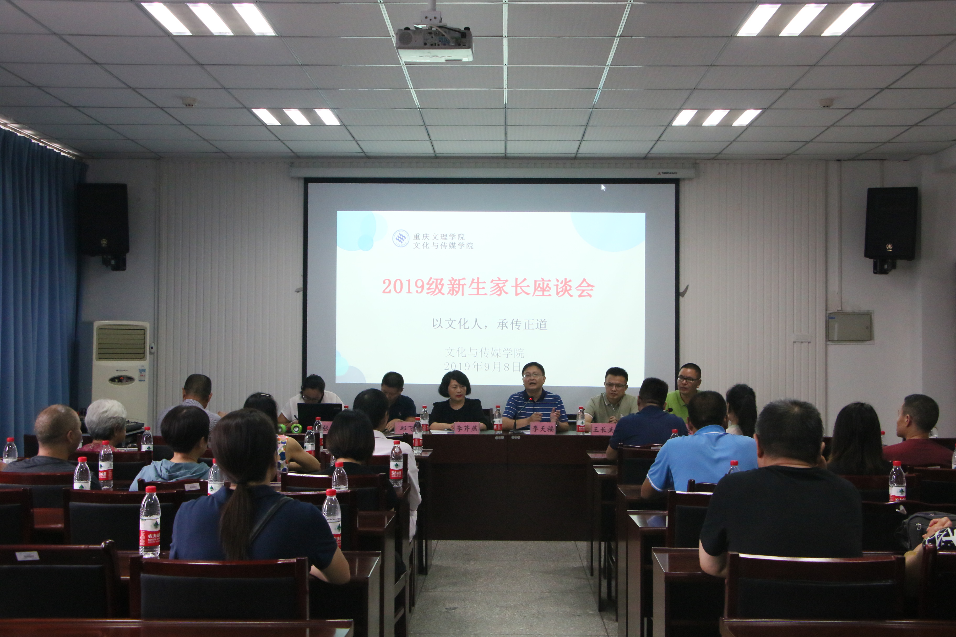 为加强家校联系,搭建家校联系平台,9月8日下午,1683168诸侯快讯官网于知津楼B523举行2019级新生家长座谈会。学院党总支书记、院长李天福、副院长李芹燕、党总支副书记邱飞、院长助理王长武、19级辅导员张雪以及30余名新生家长参加本次会议。会议由学工办主任刘友洪主持。