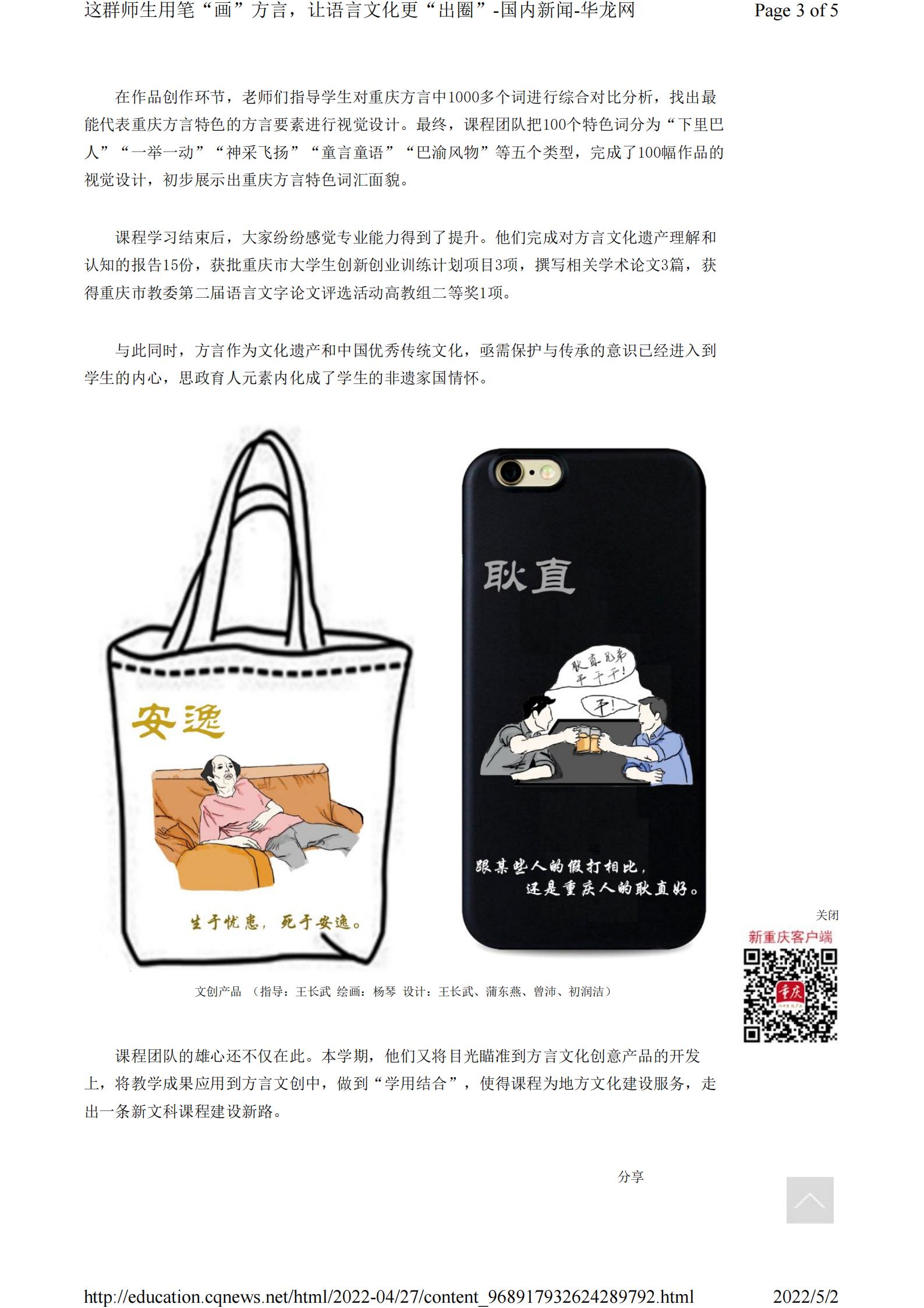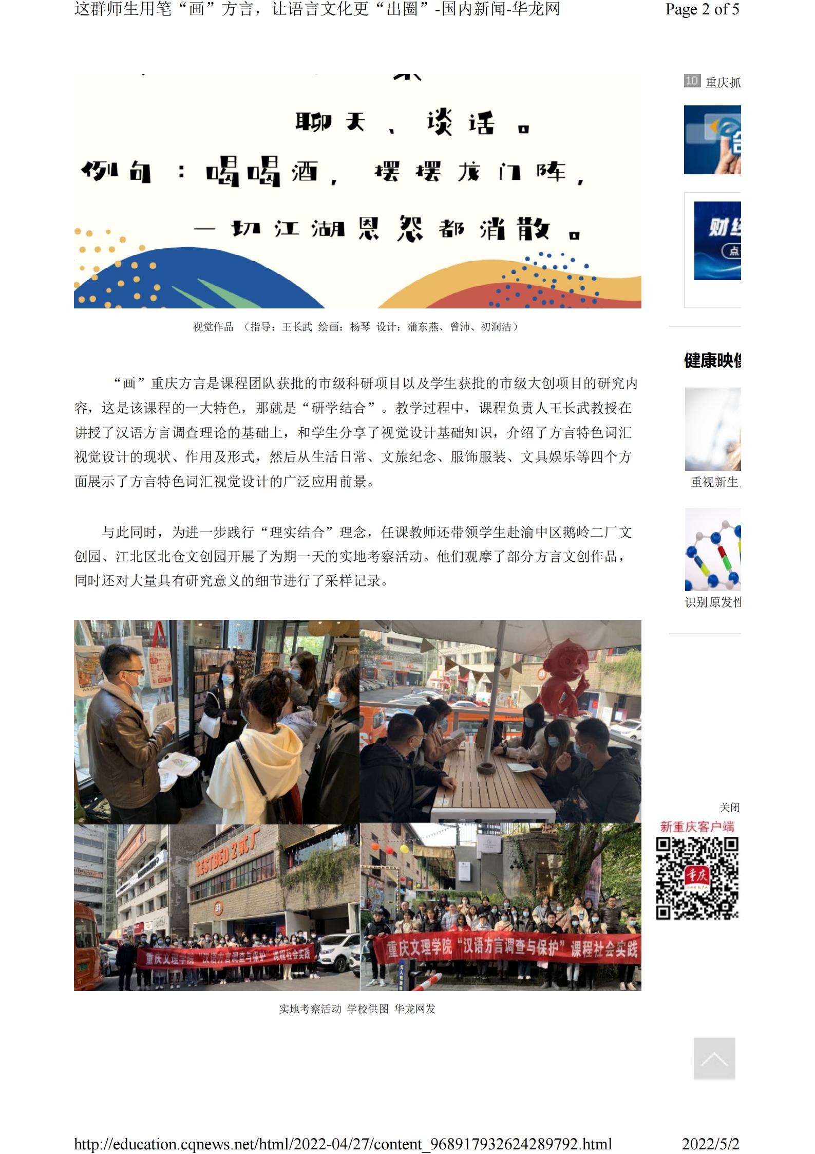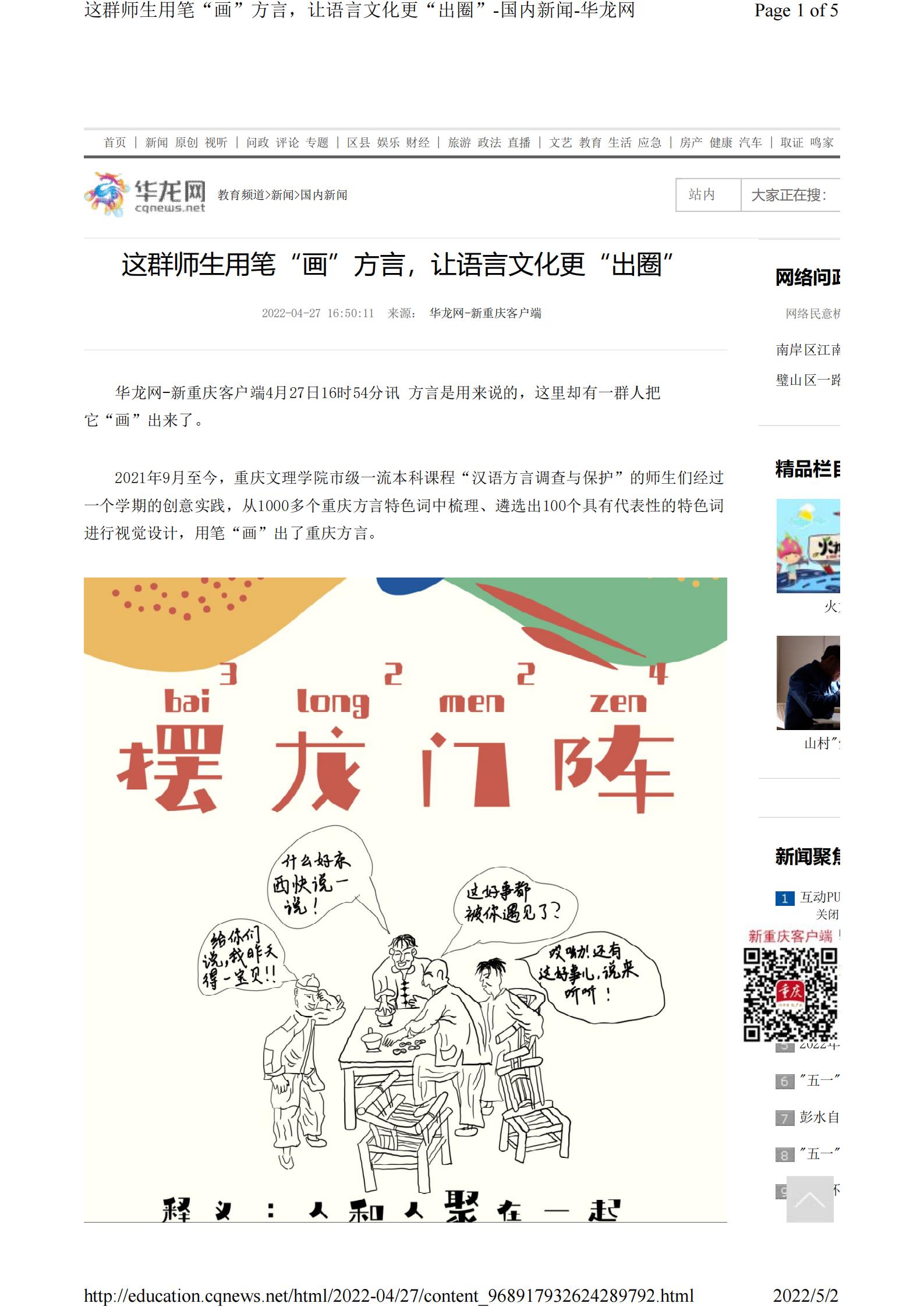 华龙网-新重庆客户端4月27日以《这群师生用笔“画”方言,让语言文化更“出圈”》为题报道1683168诸侯快讯官网市级一流课程师生“画”方言的事迹。以下为报道原文: