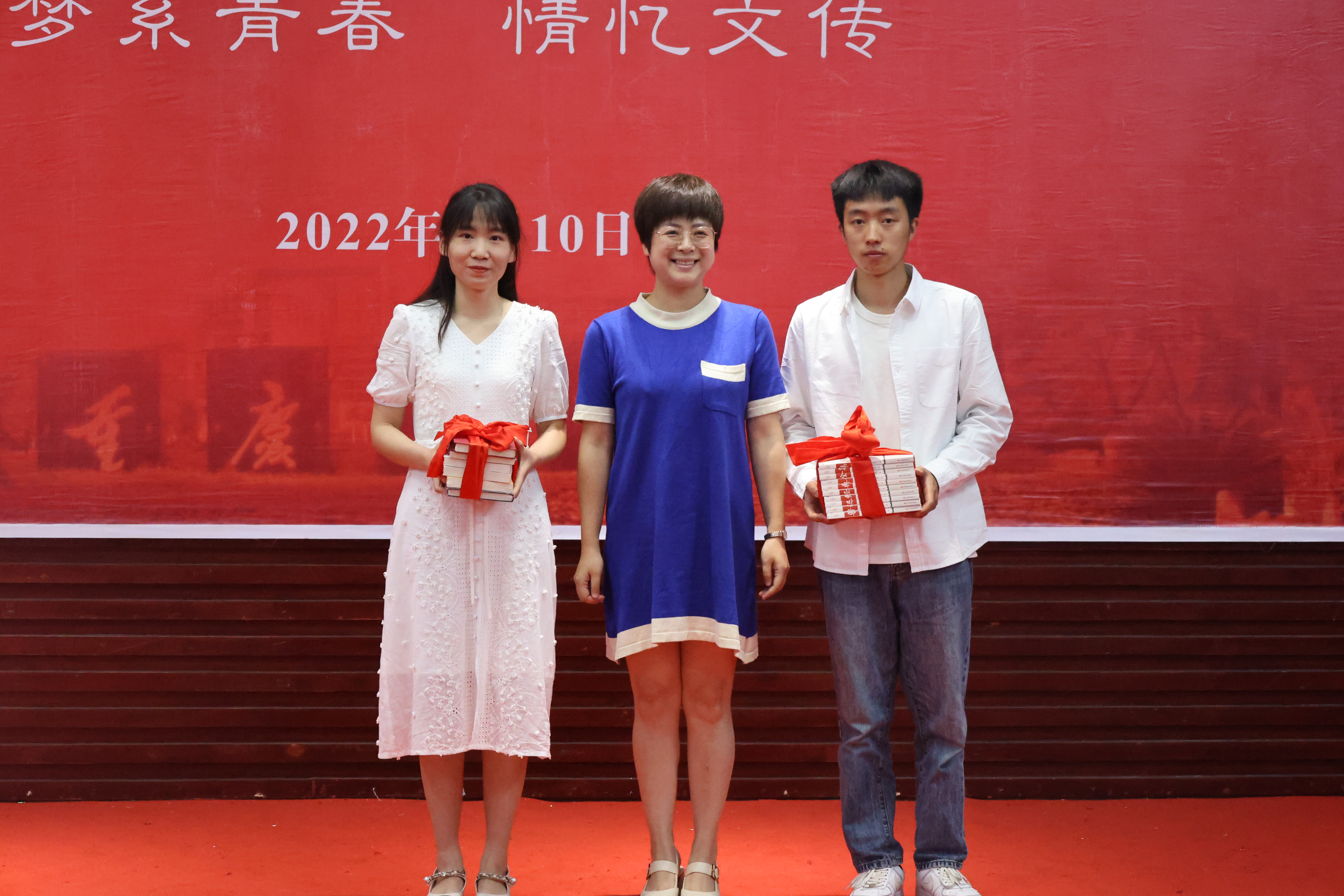 随后,毕业生代表向学院赠送书籍和牌匾。
